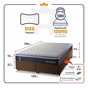 O Colchão Dakota é feito com os mais nobres materiais em sua composição, ele conta com espuma D33. Por ser mais macio, o colchão traz benefícios e ajuda no alinhamento da coluna. O colchão King House acomoda melhor o contorno do corpo, dispondo de forma correta quadris e ombros, expulsando as dores e problemas de coluna.
