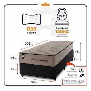 O Colchão San Diego é feito com os mais nobres materiais em sua composição, ele conta com espuma D33. Por ser mais macio, o colchão traz benefícios e ajuda no alinhamento da coluna. O colchão King House acomoda melhor o contorno do corpo, dispondo de forma correta quadris e ombros, expulsando as dores e problemas de coluna.