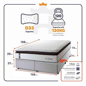 Medidas do Colchão: 88x188x29 cm, 96X203x29 cm, 138x188x29 cm, 158x198x29 cm, 193x203x29 cm.