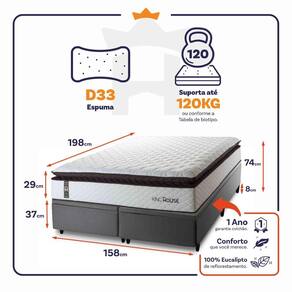 Medidas do Colchão: 88x188x29 cm, 96X203x29 cm, 138x188x29 cm, 158x198x29 cm, 193x203x29 cm.