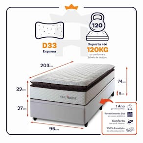 Medidas do Colchão: 88x188x29 cm, 96X203x29 cm, 138x188x29 cm, 158x198x29 cm, 193x203x29 cm.