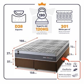 O Colchão Sheffield é feito com os mais nobres materiais em sua composição, ele conta com espuma D28 e molas ensacadas. Por ser mais macio, o colchão de molas ensacadas individualmente traz benefícios e ajuda no alinhamento da coluna. O colchão King House acomoda melhor o contorno do corpo, dispondo de forma correta quadris e ombros, expulsando as dores e problemas de coluna.