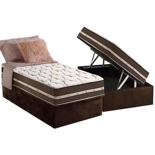 Conjunto Box Baú Solteiro: Colchão Molas Anjos Superlastic Classic + Base CRC Suede Brown(88x188)