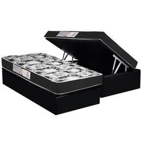 Conjunto Box Baú Solteiro: Colchão Molas Luckspuma D28 Celebrity Black + Base Crc Suede Black (88x188)