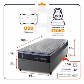 O Colchão Dakota é feito com os mais nobres materiais em sua composição, ele conta com espuma D33. Por ser mais macio, o colchão traz benefícios e ajuda no alinhamento da coluna. O colchão King House acomoda melhor o contorno do corpo, dispondo de forma correta quadris e ombros, expulsando as dores e problemas de coluna.