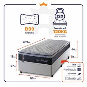 O Colchão Dakota é feito com os mais nobres materiais em sua composição, ele conta com espuma D33. Por ser mais macio, o colchão traz benefícios e ajuda no alinhamento da coluna. O colchão King House acomoda melhor o contorno do corpo, dispondo de forma correta quadris e ombros, expulsando as dores e problemas de coluna.