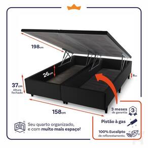 - Altura: 22 cm (colchão) + 37 cm (box baú) + 8 cm (pés) = 67 cm de altura;