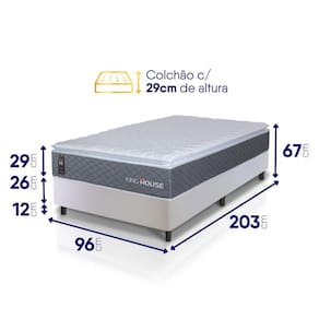 - Altura: 55 cm (colchão) + 12 cm (box) = 67 cm de altura;