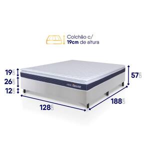 - Altura: 45 cm (colchão) + 12 cm (box) = 57 cm de altura;