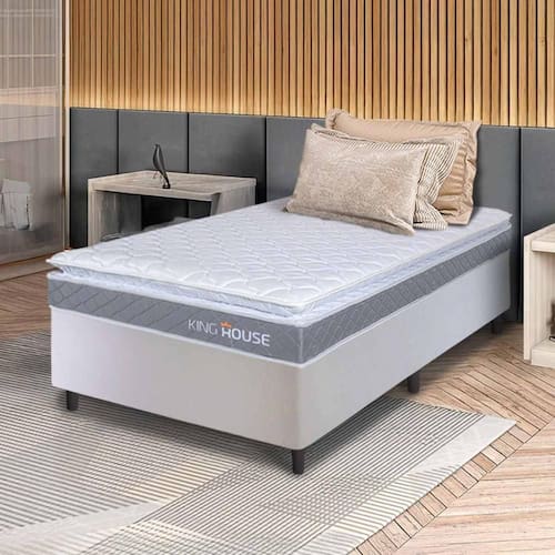 - Altura: 45 cm (colchão) + 12 cm (box) = 57 cm de altura;