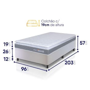 Medidas Colchão + Box: 88x188x57 cm, 96x203x57 cm, 128x188x57 cm, 138x188x57 cm, 158x198x57 cm, 193x203x57 cm.