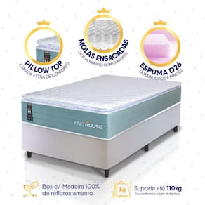 - Altura: 54 cm (colchão) + 12 cm (box) = 66 cm de altura;