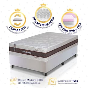 - Altura: 58 cm (colchão) + 12 cm (box) = 70 cm de altura;