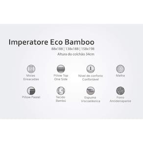 Conjunto Box Casal: Colchão Molas Herval Ensacadas Imperatore Eco Bamboo + Base CRC Corano White (138x188) Abaixo segue os produtos do KIT: Conjunto Box Casal: Colchão Molas Herval Ensacadas Imperatore Eco Bamboo + Base CRC Corano White (138x188) Colchão Casal Molas Ensacadas Visco Imperatore Eco Bamboo Euro Pillow (138x188x34) - Herval