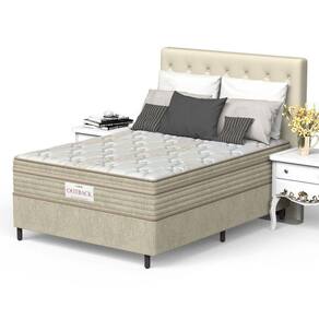 Conjunto Box Casal Mola Ensacada Prodormir New Bege Encontre o descanso que você merece com o Conjunto Box Mola Ensacada Prodormir New. Desenvolvido pela Prodormir, este colchão combina tecnologia de suporte e materiais confortáveis para oferecer noites de sono reparadoras e melhorar seu bem-estar diário. É uma escolha para quem busca qualidade e durabilidade em um colchão. Características PrincipaisModelo: New ;Marca: ProdormirPillow: EuroTecido: Malha branca com detalhes begeGramatura Tecido: 170 g/mEspuma Matelassê: D20 CilíndricaEspuma do Estofamento: Espuma D28Sistema de Molejo: Molas EnsacadasBase de Suporte do Colchão: EPSNível de Firmeza: IntermediárioSuporte de Peso: 110 kg por pessoaManutenção: No turnCertificação Inmetro: Certificado conforme Portaria Inmetro N 75/2021Garantia: 12 MesesTamanho: CasalComprimento: 188 cmLargura: 138 cmAltura: 70 cmIndicação Biotipos Casais: Indicado também para casais com biotipos diferentes Benefícios do Colchão Prodormir New ;Conforto Acolhedor com Pillow Euro: O Colchão New possui um pillow euro que proporciona uma camada extra de conforto e maciez. O tecido em malha de 170 g/m, com um design elegante em branco e detalhes , oferece uma superfície suave e agradável ao toque, contribuindo para um ambiente de descanso convidativo.Suporte Individualizado com Molas Ensacadas: Equipado com molas ensacadas, este colchão oferece suporte adaptável que responde de forma independente à pressão de cada parte do corpo. Isso garante um alinhamento correto da coluna e minimiza a transferência de movimento, sendo ideal para casais com biotipos diferentes, assegurando que o movimento de um não perturbe o sono do outro. Estrutura e Durável: A combinação da espuma D28 no estofamento com a base de suporte em EPS e o sistema de molas de qualidade garante uma estrutura robusta e resistente. Projetado para suportar até 110 kg por pessoa, o colchão mantém seu suporte e conforto por mais tempo. Sono Revigorante e Bem-Estar: O nível de firmeza intermediário e o suporte preciso das molas ensacadas ajudam a aliviar pontos de pressão e promovem uma postura saudável durante o sono. Isso contribui para um descanso mais profundo e contínuo, resultando em mais energia e disposição para o dia a dia. Manutenção Simplificada: A tecnologia no turn elimina a necessidade de virar o colchão periodicamente, facilitando a manutenção e prolongando sua vida útil, para sua conveniência. Qualidade Garantida e Certificada: A garantia de 12 meses e a certificação Inmetro (conforme Portaria N 75/2021) atestam a qualidade e a do Colchão Prodormir New. A marca Prodormir se preocupa em oferecer produtos em que você possa confiar. Por que Escolher o Colchão Prodormir New ?O Conjunto Box Mola Ensacada Prodormir New é uma escolha inteligente para quem busca um equilíbrio entre conforto, suporte e durabilidade. Ele oferece as características importantes para um sono de qualidade, como o suporte individualizado das molas ensacadas e a praticidade da manutenção no turn, em um produto com a confiabilidade da marca Prodormir. Altura: 70 cm
