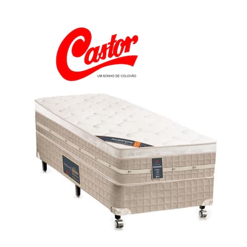 Conjunto Colchão Castor com base Box Solteiro Premium Tecnopedic 78x188x70