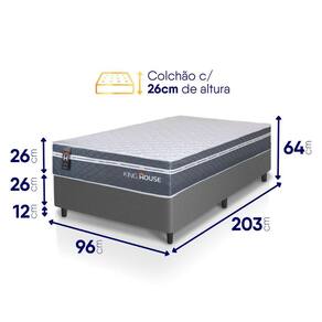 - Altura: 52 cm (colchão) + 12 cm (box) = 64 cm de altura;