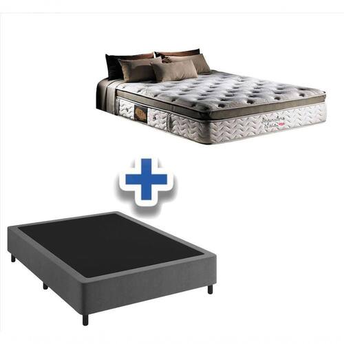 CONJUNTO: BOX SUEDE CINZA + COLCHÃO HERVAL IMPERATORE - MOLAS ENSACADAS - ECO BAMBOO
