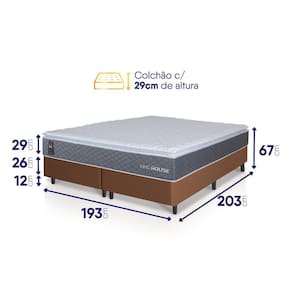 - Altura: 55 cm (colchão) + 12 cm (box) = 67 cm de altura;