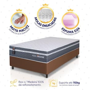- Altura: 52 cm (colchão) + 12 cm (box) = 64 cm de altura;