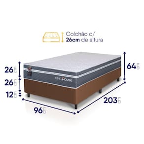 - Altura: 52 cm (colchão) + 12 cm (box) = 64 cm de altura;
