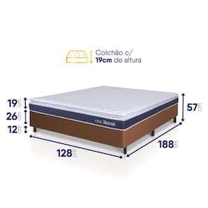 - Altura: 45 cm (colchão) + 12 cm (box) = 57 cm de altura;