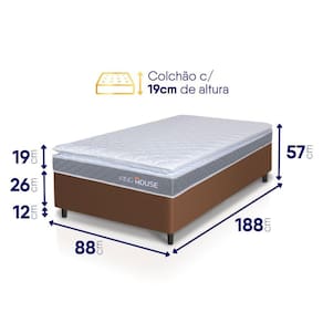 - Altura: 45 cm (colchão) + 12 cm (box) = 57 cm de altura;