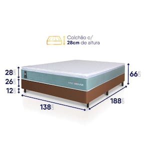 - Altura: 54 cm (colchão) + 12 cm (box) = 66 cm de altura;