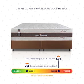 Feito com os mais nobres materiais em sua composição, ele conta com espuma D26 E D33 e molas ensacadas. Por ser mais macio, o colchão de molas ensacadas individualmente traz benefícios e ajuda no alinhamento da coluna. O colchão Mali acomoda melhor o contorno do corpo, dispondo de forma correta quadris e ombros, expulsando as dores e problemas de coluna.Não perca mais tempo e garanta já o seu Conjunto Box Mali!