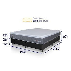 - Altura: 55 cm (colchão) + 12 cm (box) = 67 cm de altura;
