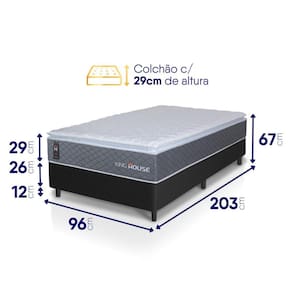 - Altura: 55 cm (colchão) + 12 cm (box) = 67 cm de altura;