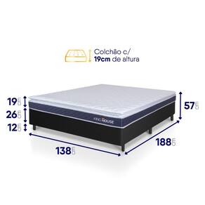- Altura: 45 cm (colchão) + 12 cm (box) = 57 cm de altura;