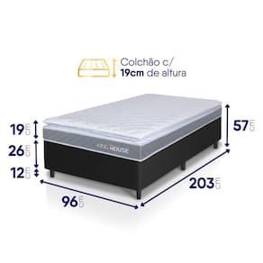 Medidas Colchão + Box: 88x188x57 cm, 96x203x57 cm, 128x188x57 cm, 138x188x57 cm, 158x198x57 cm, 193x203x57 cm.