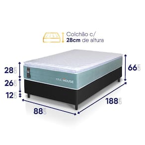 - Altura: 54 cm (colchão) + 12 cm (box) = 66 cm de altura;