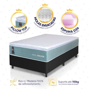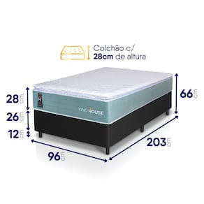 - Altura: 54 cm (colchão) + 12 cm (box) = 66 cm de altura;