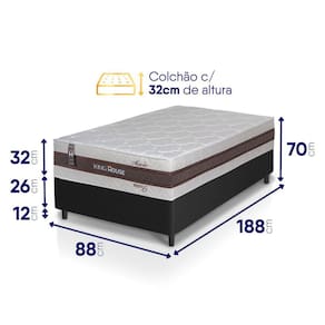 - Altura: 58 cm (colchão) + 12 cm (box) = 70 cm de altura;
