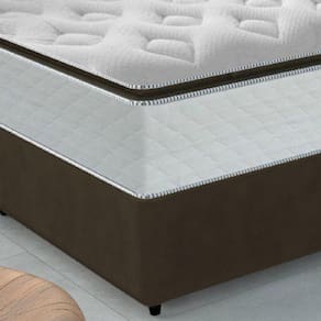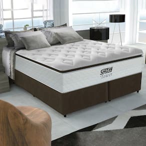 Especificações técnicas: Capacidade: 100 kg Pillow/Euro Pillow Top Revestimento superior: malha Cashmere Revestimento lateral: poliéster Revestimento inferior: tecido antiderrapante Molejo: molas ensacadas pocket Caracteristicas da base: Estrutura em eucalipto Revestimento em veloplus