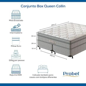 A espuma do Conjunto Box Queen Collin foi desenvolvida com a Tecnologia ProMax Probel, que passa por rigorosos testes de qualidade em laboratório e recebe tratamento antiácaro e antifungo.