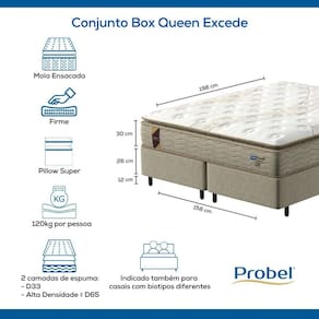 As espumas do Conjunto Box Queen Excede Premium foram desenvolvidas com a Tecnologia ProMax Probel, que passam por rigorosos testes de qualidade em laboratório e recebem tratamento antiácaro e antifungo.