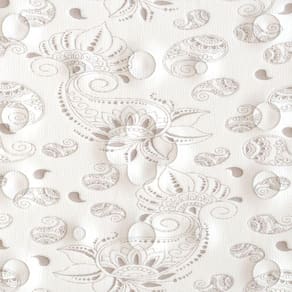 Tecido tampo: Malha branca com detalhes na cor marrom