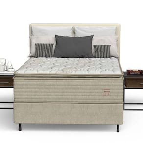 Conforto por Cima e Visual Moderno: Mesmo sendo bem firme, o Super Pillow (aquela camada extra no topo) deixa o colchão com um toque macio e aconchegante. O tecido de malha branca de 280 g/m, com seus bonitos detalhes , é agradável ao toque, ajuda o colchão a respirar e dá um visual elegante e moderno ao seu quarto.