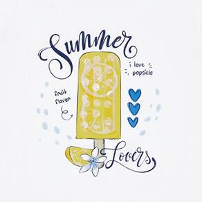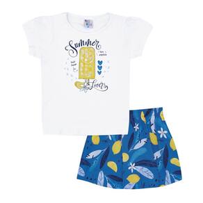 Com tecido levinho nosso conjunto picolé prioriza o conforto e o frescor da sua pequena fofurinha! A blusa é confeccionada em cotton na cor branca e possuí uma refrescante estampa de picolé com frases ao redor “amantes do verão”, “sabor de fruta” e “eu amo picolé”. O detalhe da estampa é que também possuí bordado em paetê, deixando a peça ainda mais charmosa. O short confeccionado em viscose na cor digitial royal, possuí estampa de folhas e limões que lembram dias mais quentes e refrescantes. Perfeito para os dias de verão!