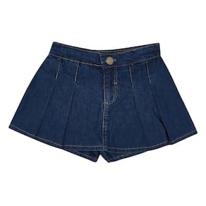 Prontas para um passeio especial? Preparamos o conjunto fashion para as meninas, a blusa no modelo cropped é confeccionada em meia malha na cor branca e possuí placa de metal com identificação Pulla Bulla próximo da cintura. Já o short saia jeans na cor índigo escuro possuí pregas e botão frontal. As peças podem ser usadas separadamente, aumentando assim sua versatilidade.