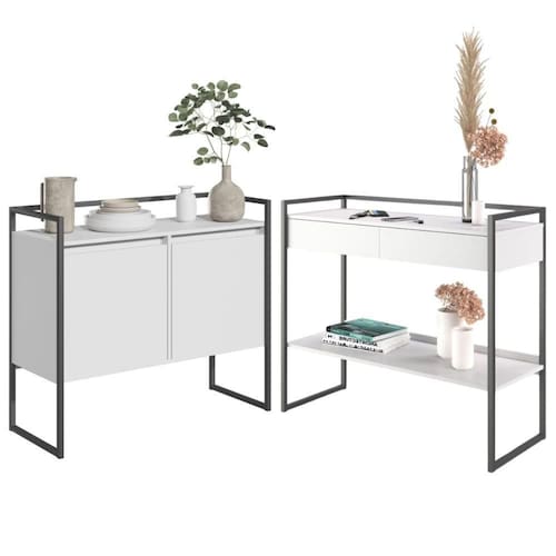 Esse Conjunto de Buffet e Aparador é perfeito para a sua sala de jantar ou de estar, com seu charme industrial para a renovação do seu ambiente elegante e moderno.