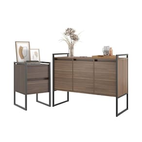 Com estrutura em aço 20x20, as peças apresentam durabilidade e estilo único. O buffet tem 3 portas e o gaveteiro possui duas gavetas espaçosas para organização. O acabamento em pintura epóxi proporciona um toque refinado e resistente.