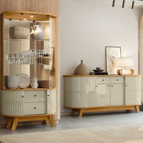 O Buffet Mônaco traz sofisticação e funcionalidade à sala de estar. O detalhe exclusivo da Madetec é a porta curva em MDF, que garante autenticidade, praticidade e um acabamento sofisticado.