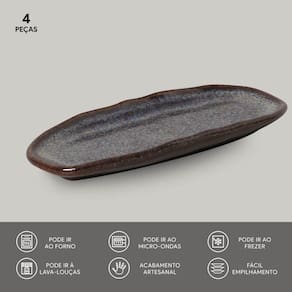 Conjunto c/ 4 Travessas Oval Rasa Mini Orgânico Titanium 16,5x8cm