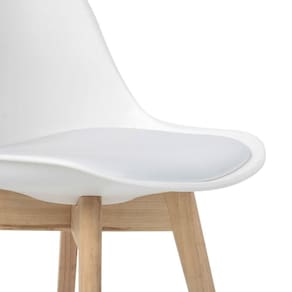 Conjunto C/5 Cadeiras Charles Eames Leda Saariem Design Wood Estofada Base Madeira - Branca Cadeira Leda Charles Eames Wood Do designer finlandes Eero Saarinen, a cadeira com assento estofado Saarinen representa um trabalho icônico de design da década de 50, juntamente com a Eames. Sua concha ergonômica é produzida em PP (Polipropileno) e conta com assento fixo em tecido sintetico (PU). Seus pés são feitos em madeira com ótimo acabamento. Adequa-se perfeitamente para compor conjunto de mesa de jantar ou qualquer outro ambiente em sua casa ou escritório. Ideal para receber amigos e familiares com um toque de elegância e charme.