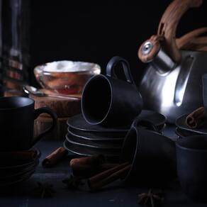 CONJUNTO C/ 6 PRATOS DE SOBREMESA ORGÂNICO CARBON Ø 19,5cm