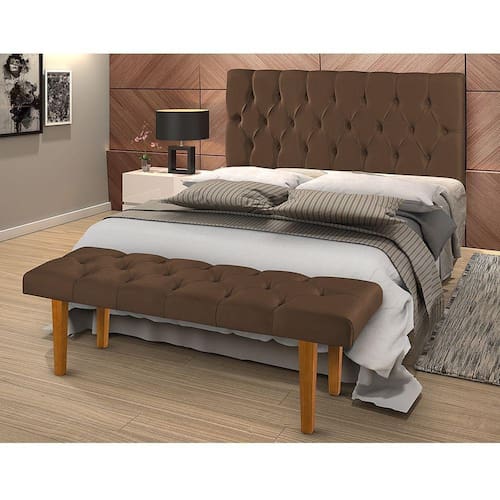 Com um design elegante e moderno, este conjunto trará um toque de sofisticação para a sua decoração. A cabeceira proporciona conforto e suporte para a cabeça durante a leitura ou ao assistir TV na cama. Já o recamier é ideal para relaxar e descansar os pés após um longo dia de trabalho. Feito com materiais de alta qualidade, este conjunto é durável e resistente, além de ser fácil de limpar.CARACTERISTICAS:Tipo: ConjuntoModelo: ParisTecido: Veludo Cor: Marrom DIMENSÕES DO RECAMIER:Altura: 44cmLargura: 130cmProfundidade: 43cmDIMENSÕES DA CABECEIRA:Altura: 57cmLargura: 140cmProfundidade: 6cmATENÇÃOAS IMAGENS SÃO MERAMENTE ILUSTRATIVAS E PODEM SOFRER VARIAÇÕES DE COR E PEQUENOS DETALHES DE ACORDO COM O SEU MONITOR, ILUMINAÇÃO DO AMBIENTE E ATÉ MESMO A SUA PERCEPÇÃO VISUAL.Conjunto Cabeceira Casal e Recamier Banco Capitonà Veludo Marrom com PÃs de Madeira Paris 1,30m Marca: D Casa Mobília